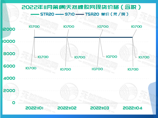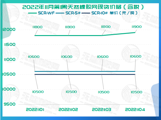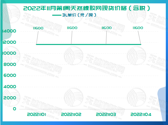 2022年11月第1周天然橡胶网现货价格如下图所示。