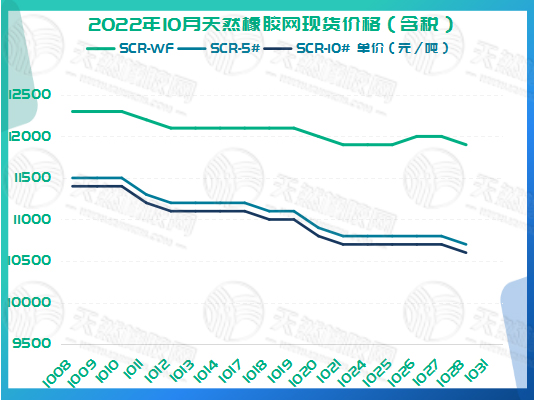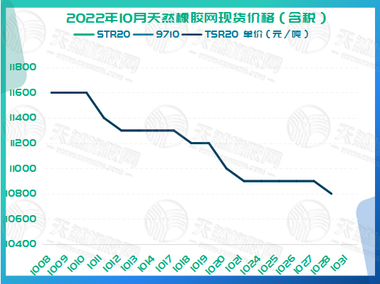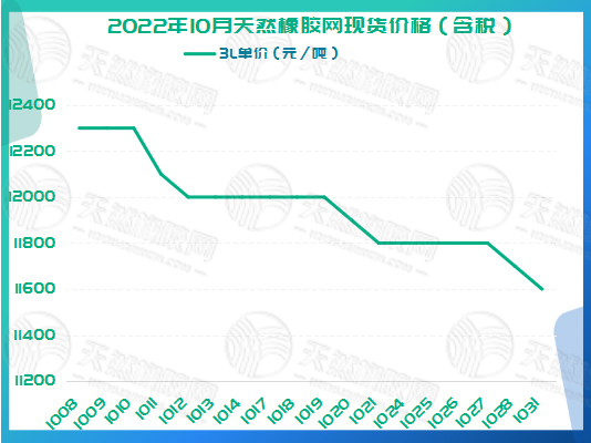 2022年10月天然橡胶网现货价格如下图所示。