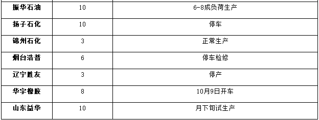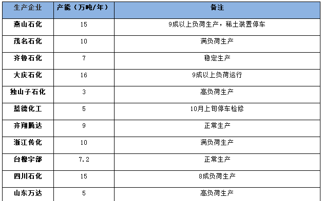在中石油和中石化企业中,中石油和中石化各企业装置维持高负荷生产;民营企业中,浙江传化新装置投产,齐翔腾达等装置高负荷生产,华宇橡胶和振华石油供应增加,益华橡塑装置试生产。综合预估11月BR9000产量在9.5-10万吨区间。