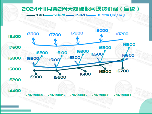 2024年11月第2周天然橡胶网现货价格如下图所示。