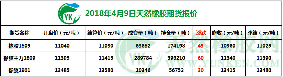 2018年4月9日天然橡胶期货报价